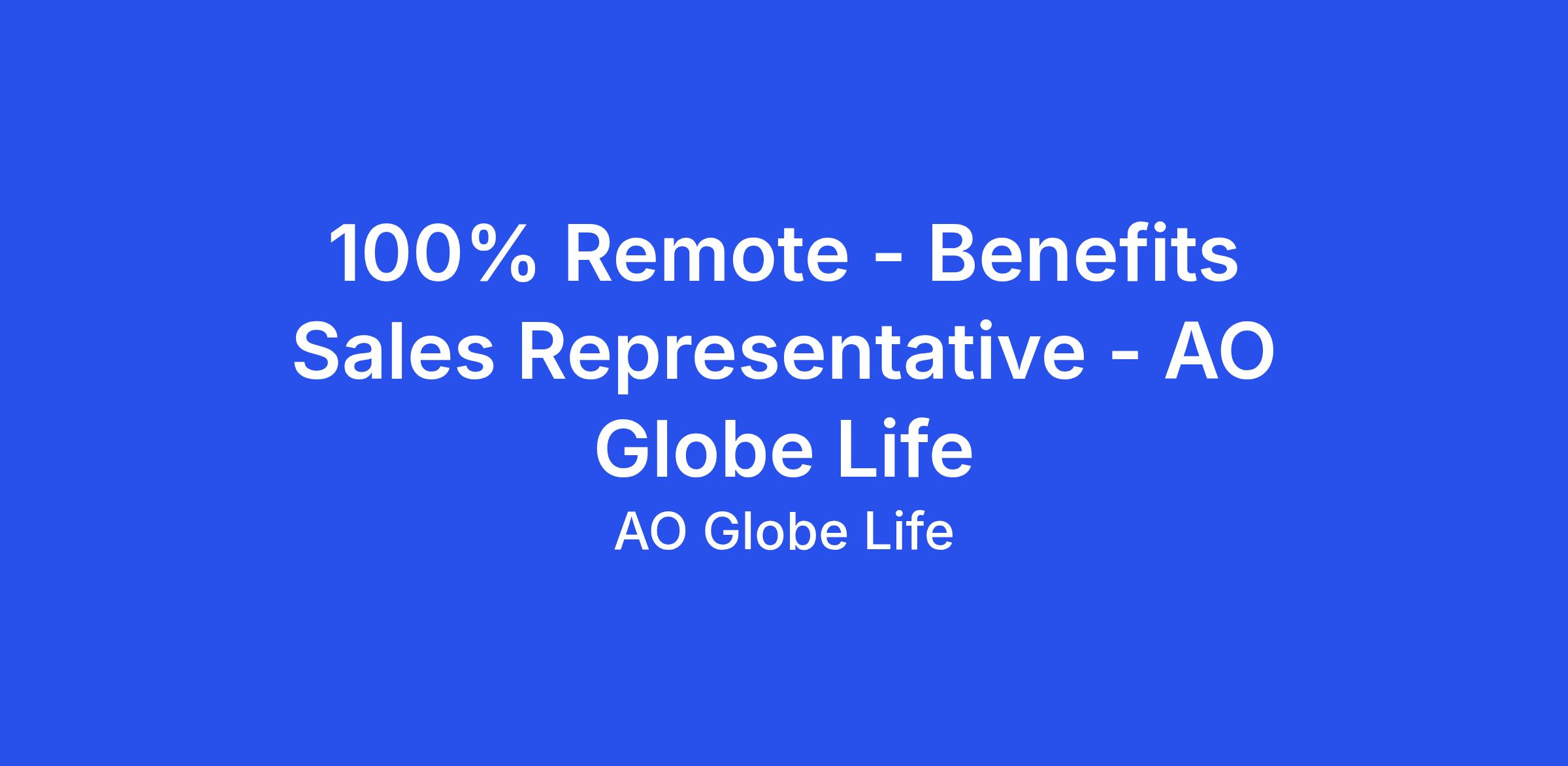 100% Remote - Benefits Sales Representative - AO Globe Life