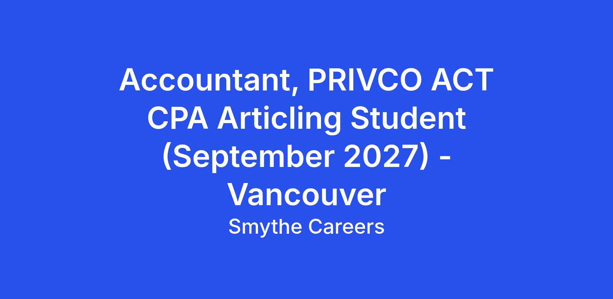 Accountant, PRIVCO ACT CPA Articling Student (September 2027) - Vancouver