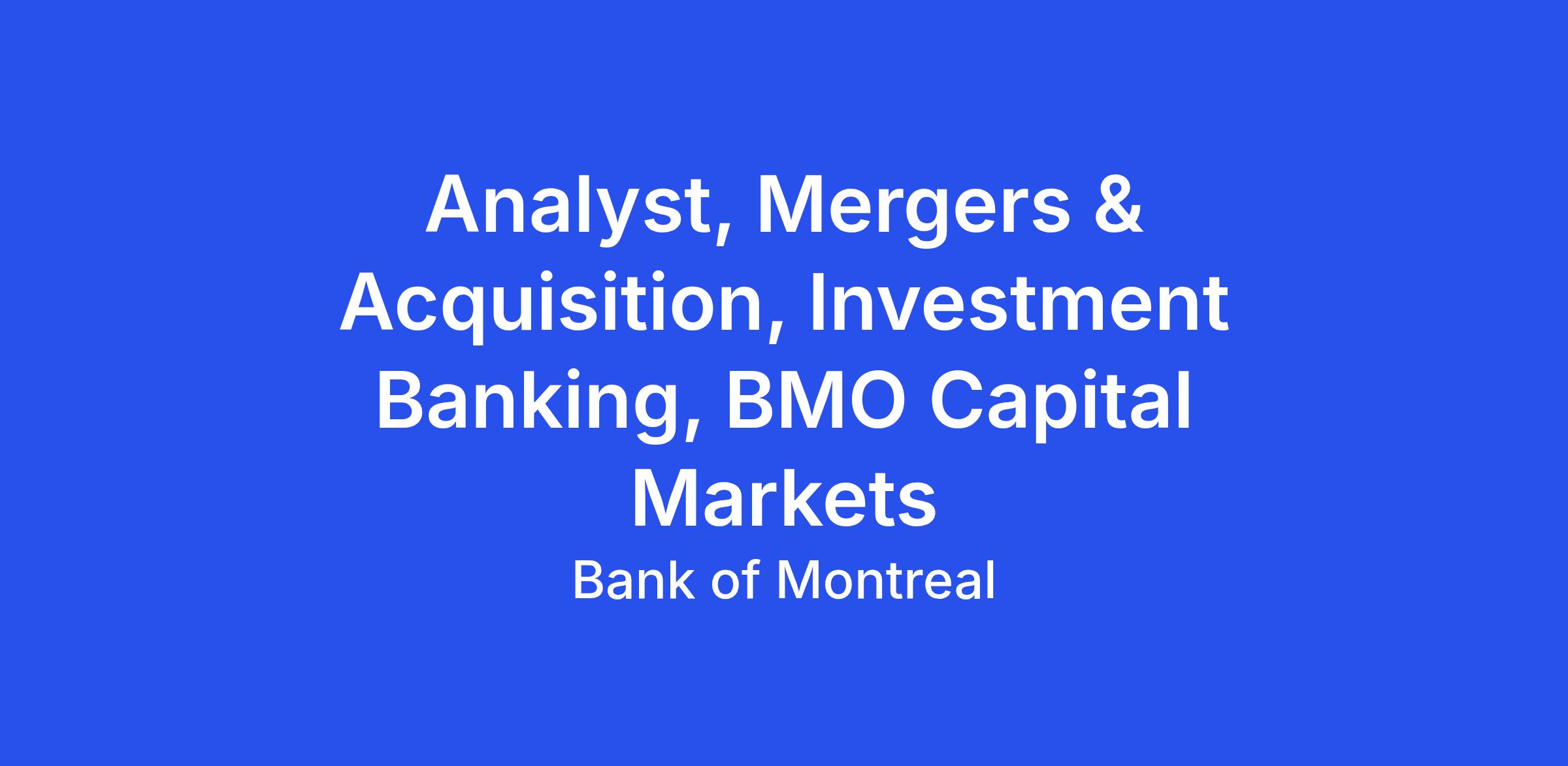 Analyst, Mergers & Acquisition, Investment Banking, BMO Capital Markets