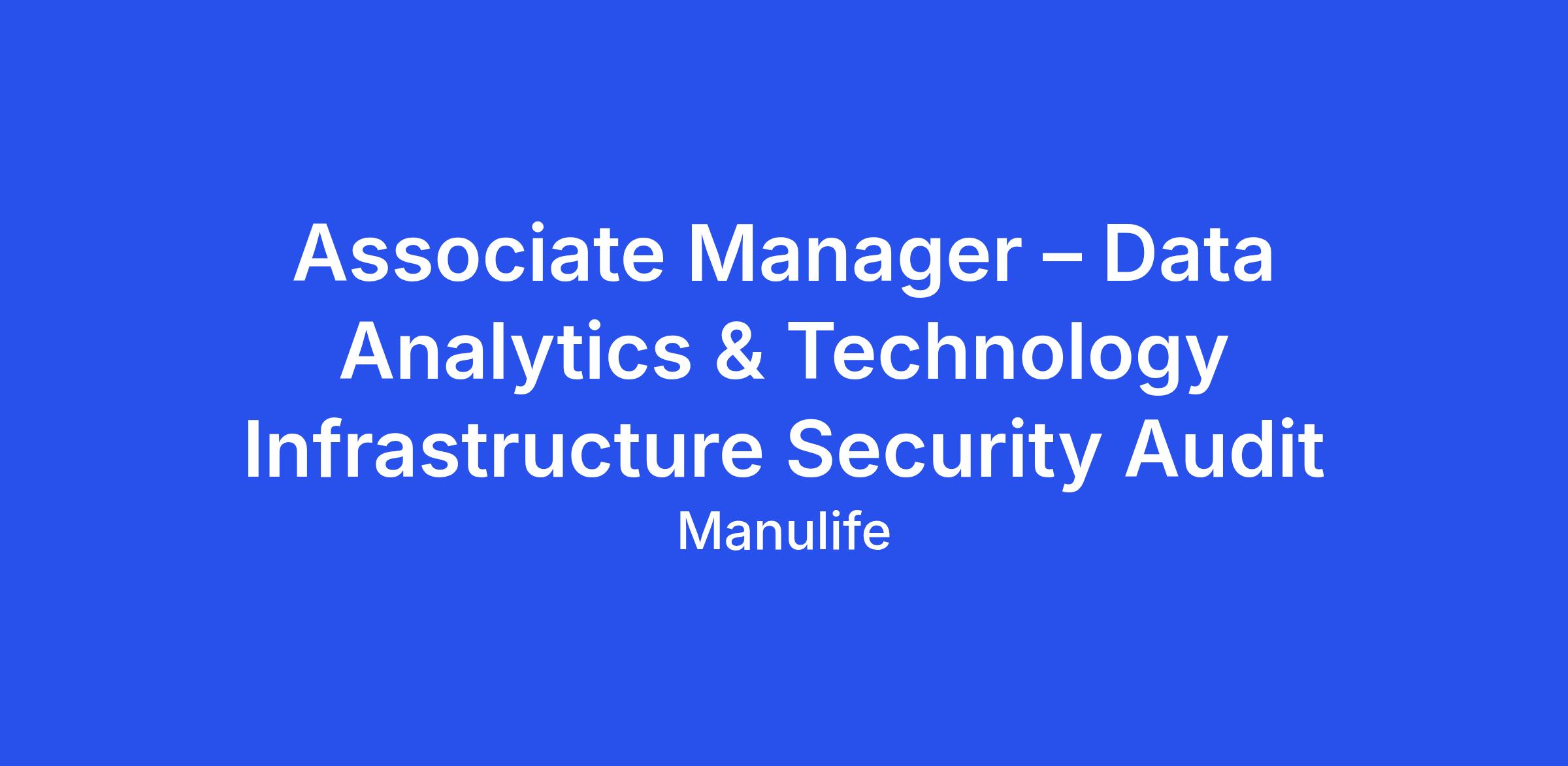 Manulife’s Internal Audit team is looking to hire an Associate Manager to support our growing Data Analytics and Technology Audit capability. This role is primarily focused on data analytics, including building Power BI dashboards, performing audit‑driven data analysis, and supporting internal analytics and automation initiatives. At the same time, the role is expected to progressively support and, over time, perform Technology Audit engagements, particularly in areas related to technology infrastructure, cybersecurity, and IT controls. This is a hybrid role by design. While analytics delivery is the primary focus, the successful candidate should be interested in developing into a well‑rounded Technology Auditor. Prior audit experience is preferred but not required.