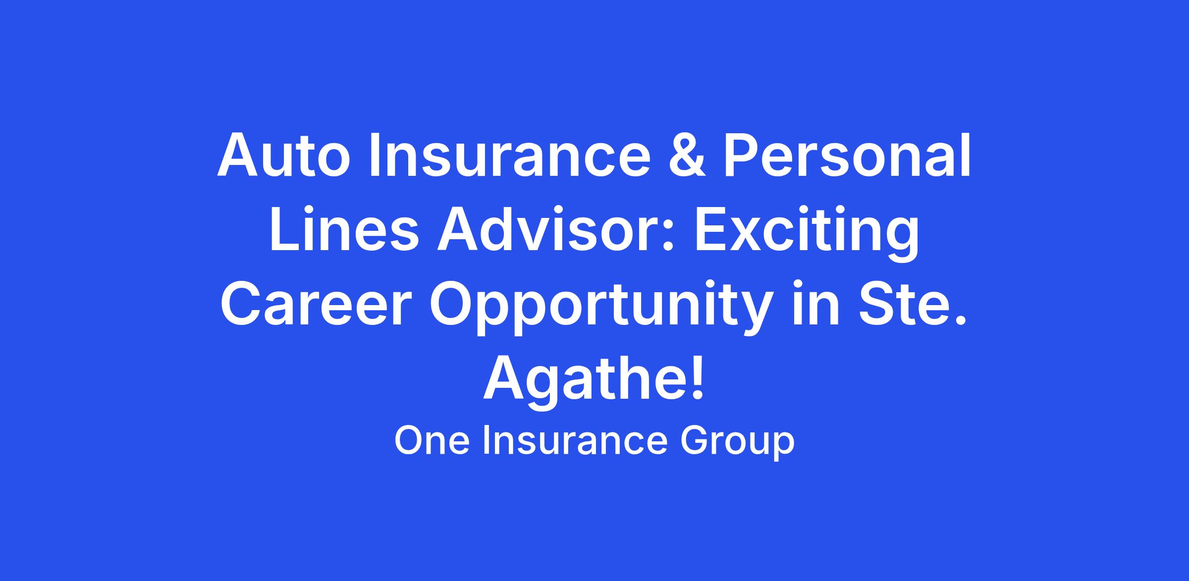 Office jobs in Ste. Agathe don’t come around often—and this one is a chance you won’t want to miss! ONE Insurance is looking for an Auto Insurance & Personal Lines Advisor to join our team right here in our Ste. Agathe branch.