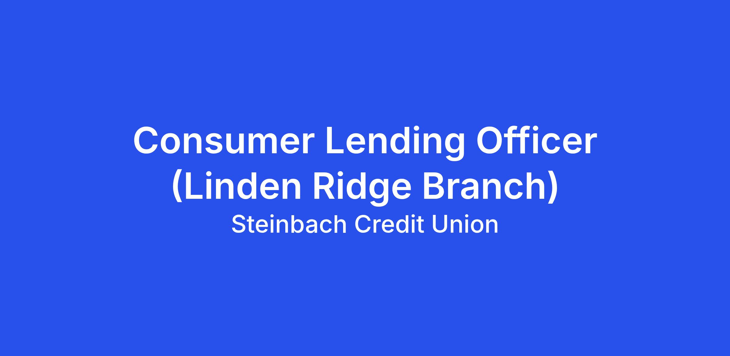 We currently have an opportunity for multiple Consumer Lending Officers to join our team in our Linden Ridge Branch. As a Consumer Lending Officer, you will provide lending services to current members and potential members. You’ll recognize member needs and promote and cross-sell all credit union products and services to members, while ensuring all assigned lending activities are in compliance with relevant legislation, regulations, policies and procedures.