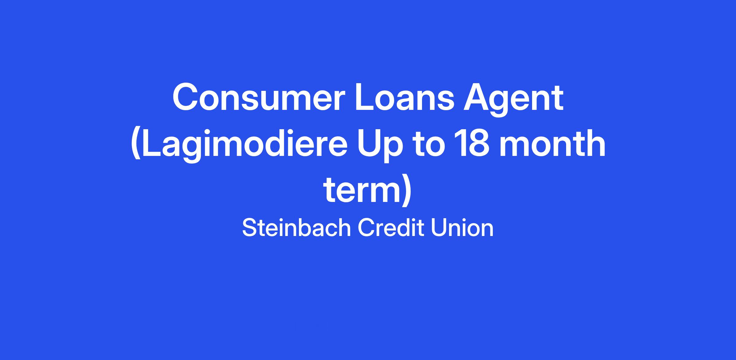We currently have an opportunity for a Consumer Loans Agent (Up to 18 month term) to join our team in our Lagimodiere branch. The Consumer Loans Agent seeks to provide support to the Consumer Lending department by monitoring member accounts and delivering exceptional service to both existing and potential members through promotion and sales of consumer lending products and services, primarily loans, lines of credit and mortgage refinances/renewals.