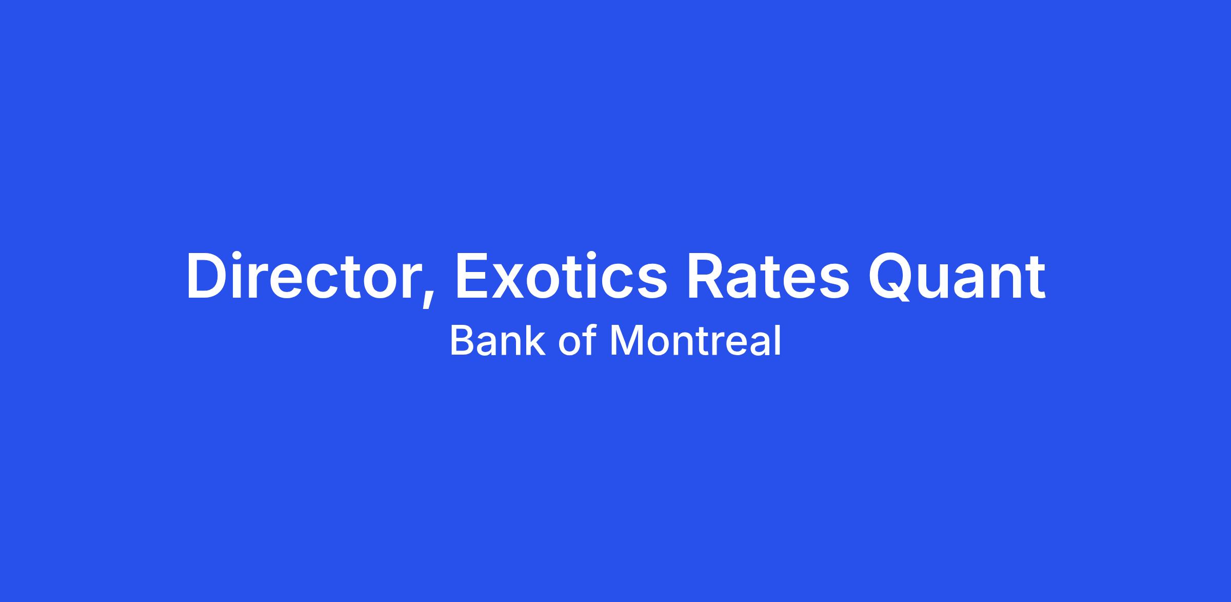 The Exotics Rates Quant Director is responsible for the entire spectrum of quantitative, analytical, technical, and development activities for the interest rate exotics/structured notes trading desks, with a particular focus in enhancing/developing multi-factor term structure models such as Libor Market Model or Cheyette/HJM models for callable rates exotics. The mandate involves developing and supporting our internal math finance library to price and risk manage swaptions, cap/floors, futures options, callable rates exotics and structured notes. The role also entails supporting traders, marketers and BMO CM senior management with the models, tools, analytics and information to effectively price, execute and hedge transactions and to understand, monitor and manage existing risk.