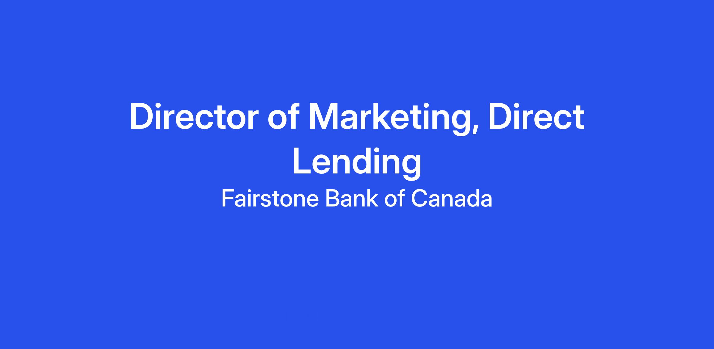 It’s an exciting time at Fairstone Bank and here is a fantastic opportunity to join the Marketing organization as a Director of Marketing, Direct Lending.