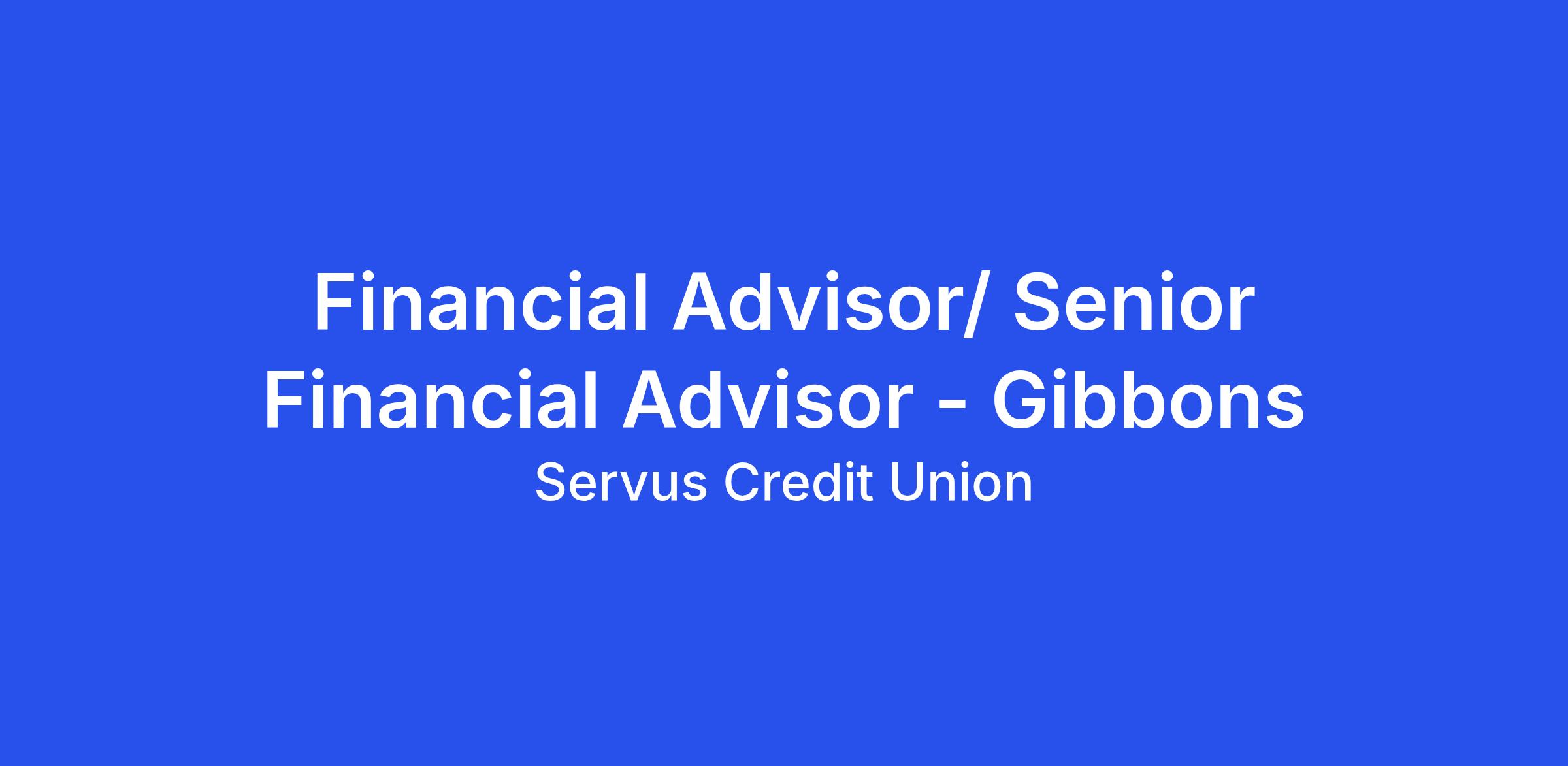 We are hiring for a Financial Advisor/ Senior Financial Advisor in our Gibbons Branch.