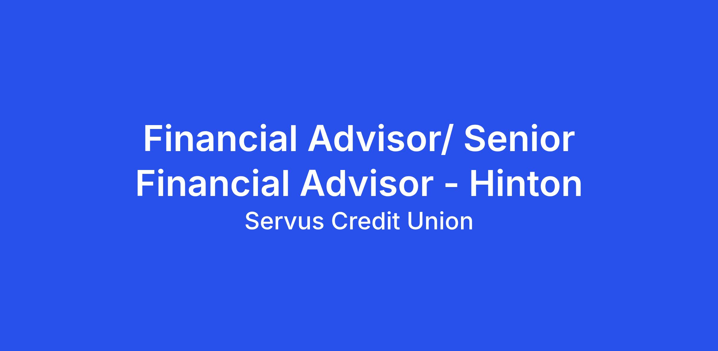 We are hiring for a Financial Advisor/ Senior Financial Advisor in our Hinton Branch.