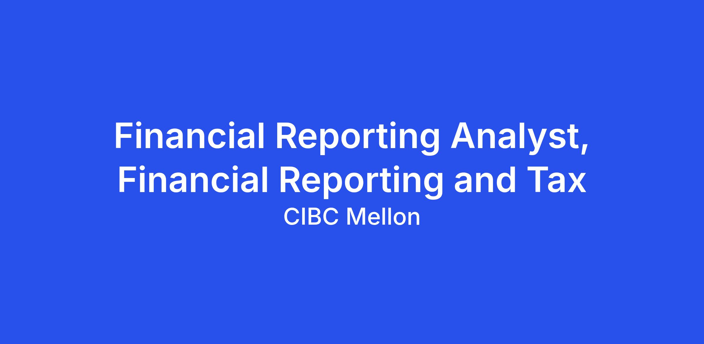 Financial Reporting Analyst, Financial Reporting and Tax