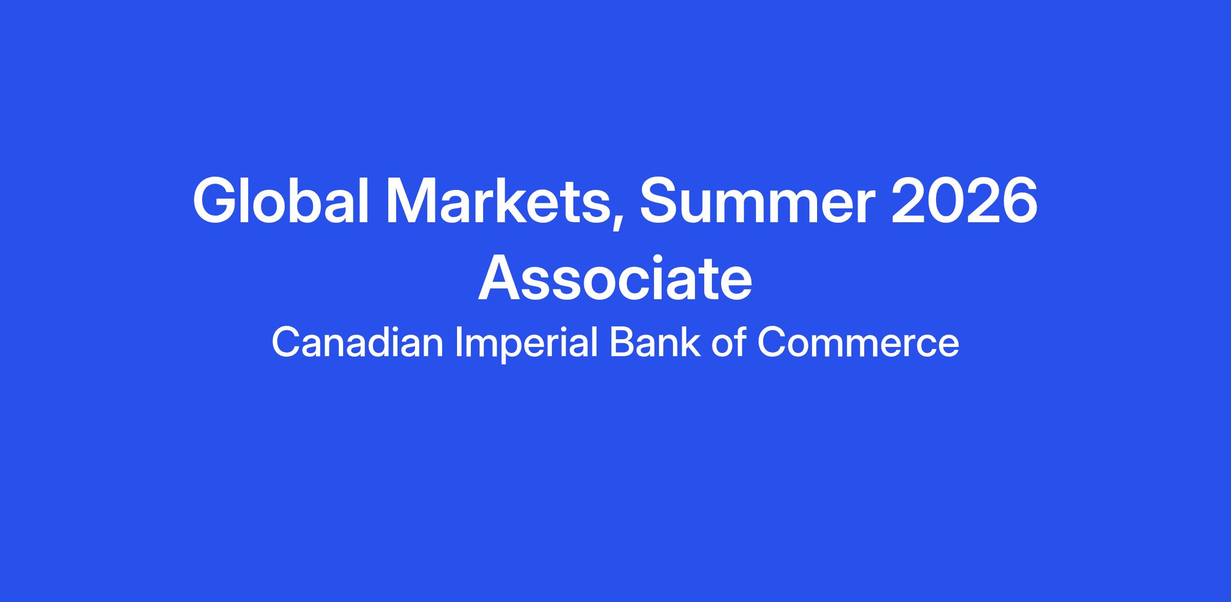 As a member of the Global Markets team, you’ll be delivering innovative banking and investment solutions to CIBC’s retail, wealth and business clients including corporates, governments and institutional clients around the world. Our goal remains to be the leading Capital Markets franchise in Canada and to work as one team to build our brand across North America and the world - proudly living our values as we work toward our vision to be the leader in client relationships. CIBC is committed to a fair and inclusive work environment where diverse ideas and perspectives are valued.