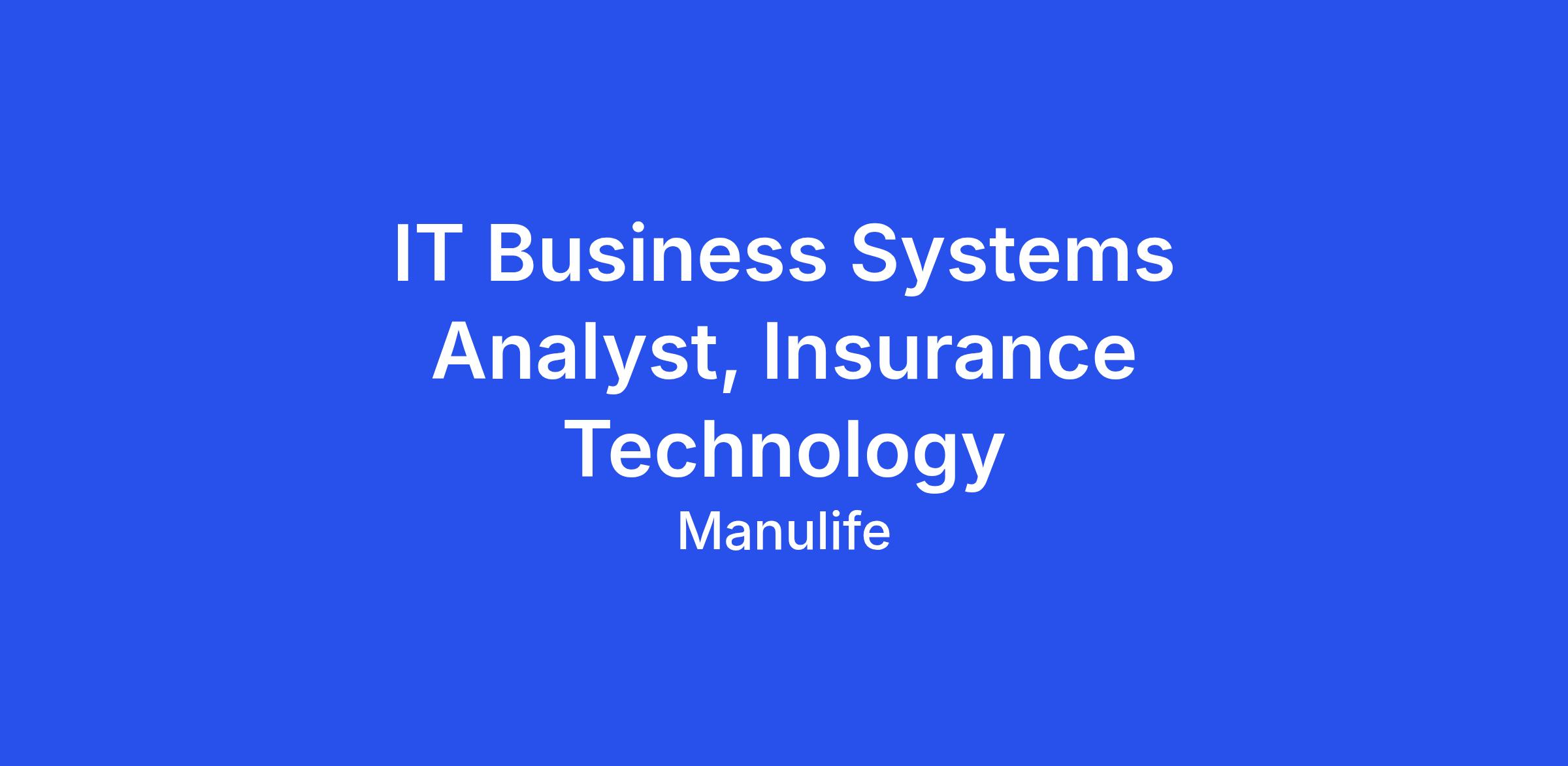 IT Business Systems Analyst, Insurance Technology