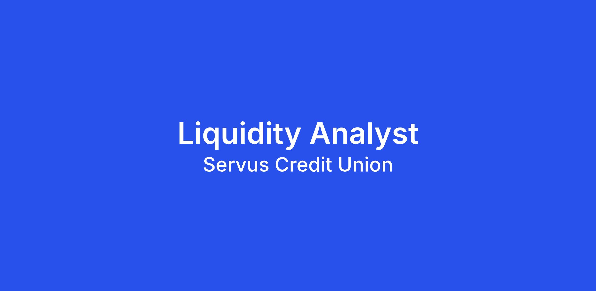 Reporting directly to the Director Funding and Liquidity, the Liquidity Analyst is responsible for contributing to the management of the funding and liquidity needs for the Credit Union. The role is expected to conduct the day-to-day management of Servus' Investment Portfolio which exceeds $2 Billion. With the support of the Director Funding and Liquidity, this position will also be responsible for managing the Credit Union's Borrowing Facilities and other funding programs (i.e. Securitization).