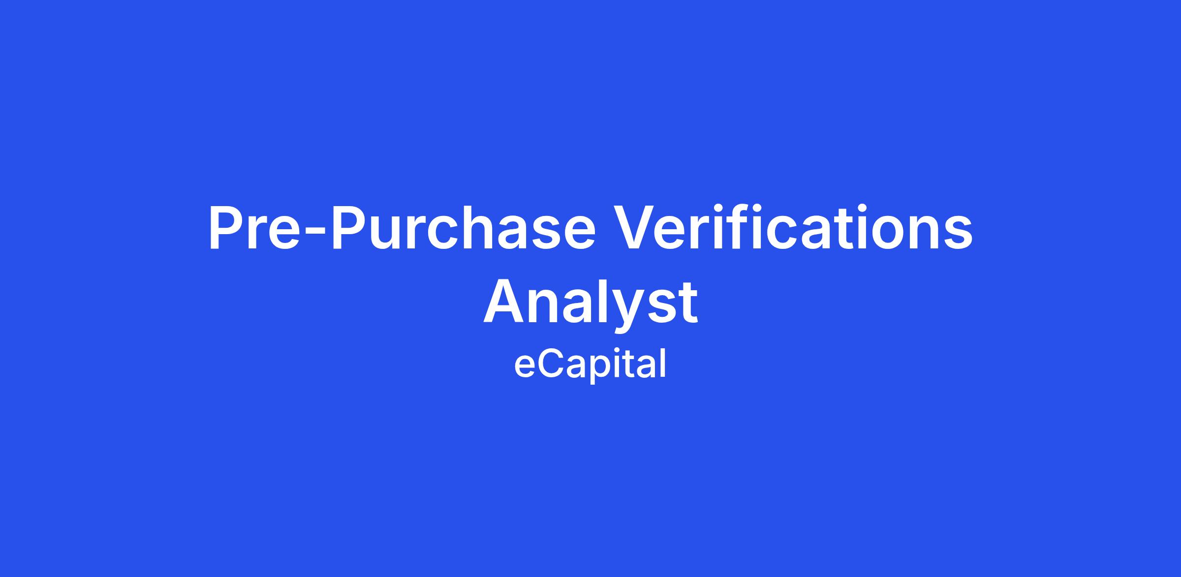 Pre-Purchase Verifications Analyst