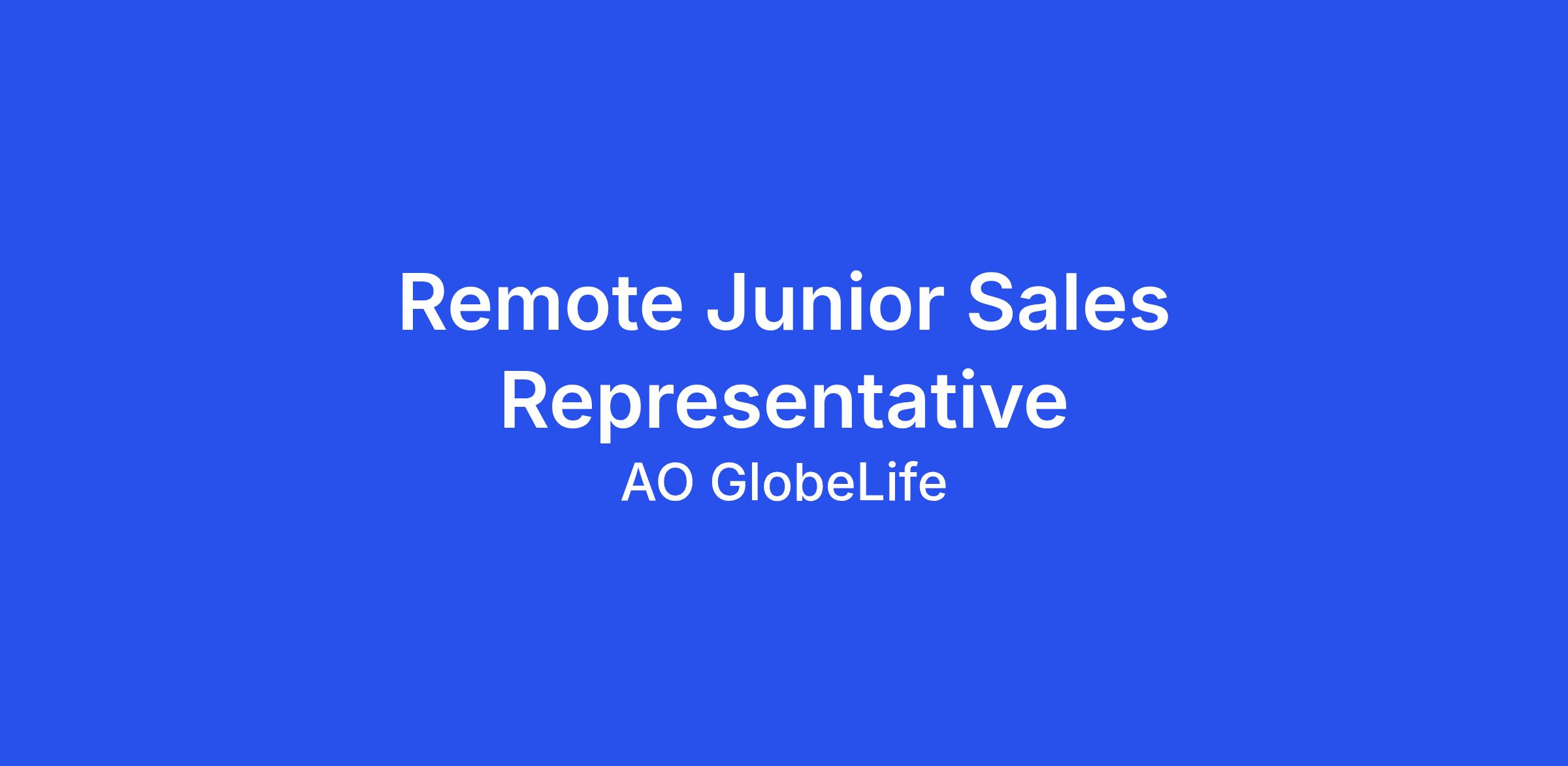AO Globe Life is seeking a dependable, detail-oriented Remote Junior Sales Representative to join our growing team. The ideal candidate will have experience in customer service or sales, work well with a team, and thrive in a fast-paced work environment. You will be the first point of contact for our clients, helping them with policy inquiries, benefits information, and service support.๏ปฟ