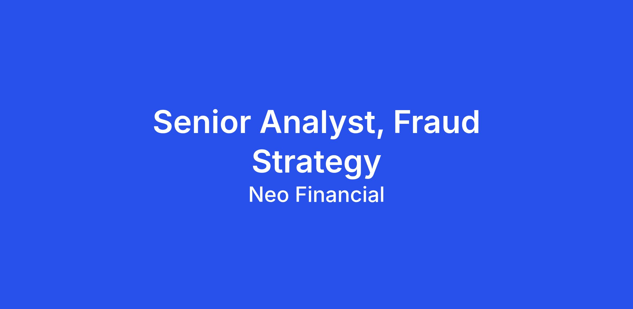 As a Senior Analyst, Fraud Strategy, you will be the critical link between our business objectives and our technical execution, ensuring that we support Neo's growth within the established risk appetite. You will dive deep into the data that powers our lending decisions, working to optimize our risk strategies and systems, creating insights and looking for opportunities to solidly expand our portfolio. This role is perfect for a data-driven problem-solver who thrives on translating complex business needs into actionable insights and technical requirements that protect both our customers and the company.