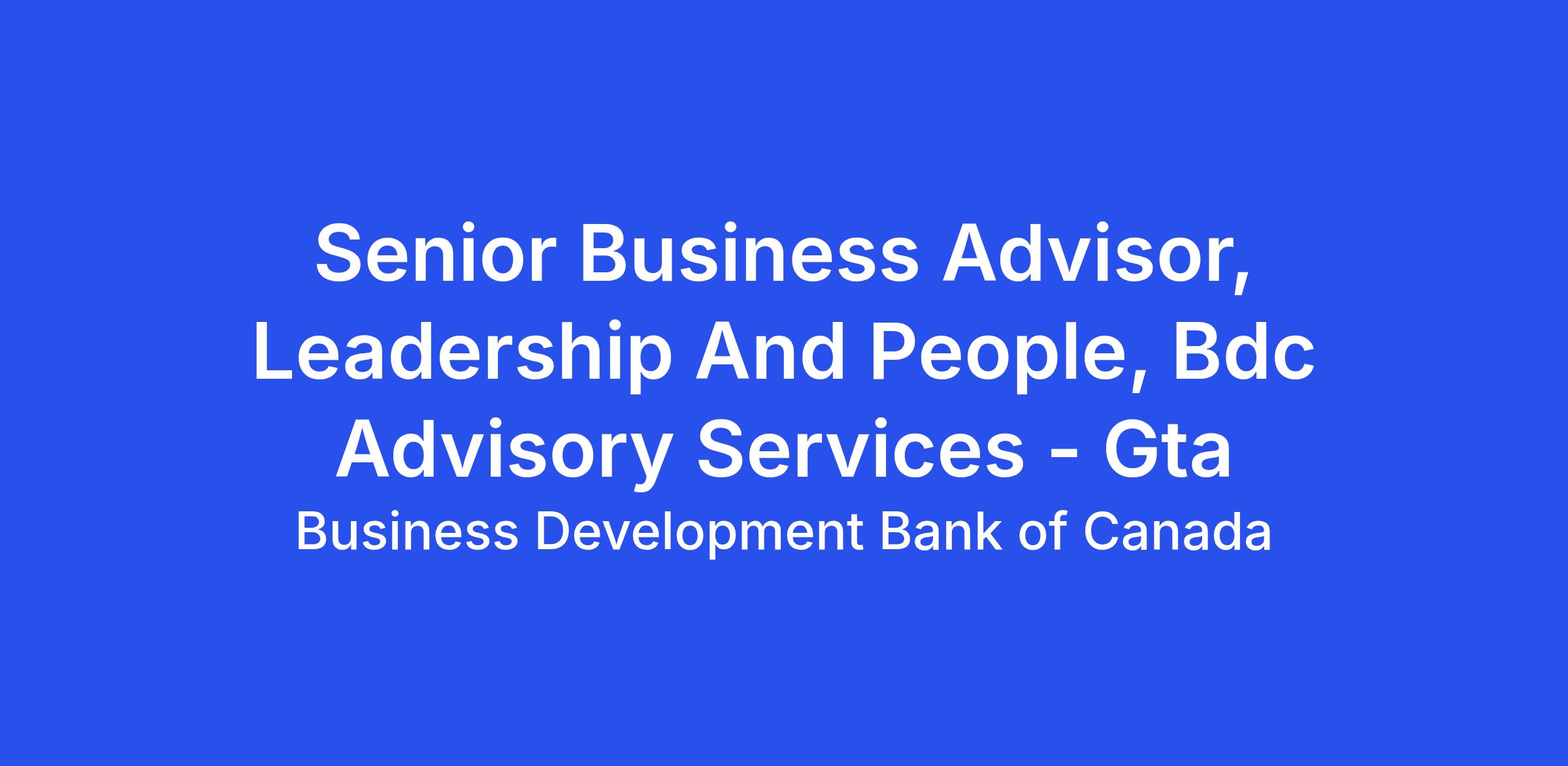 The Senior Business Advisor, Leadership and People, BDC Advisory Services delivers standard and customized advisory mandates that help Canadian SMEs strengthen leadership effectiveness, management practices, and organizational performance. The role focuses on supporting entrepreneurs, executives, and management teams in addressing practical people and leadership challenges that directly impact attraction, retention, engagement, and execution.