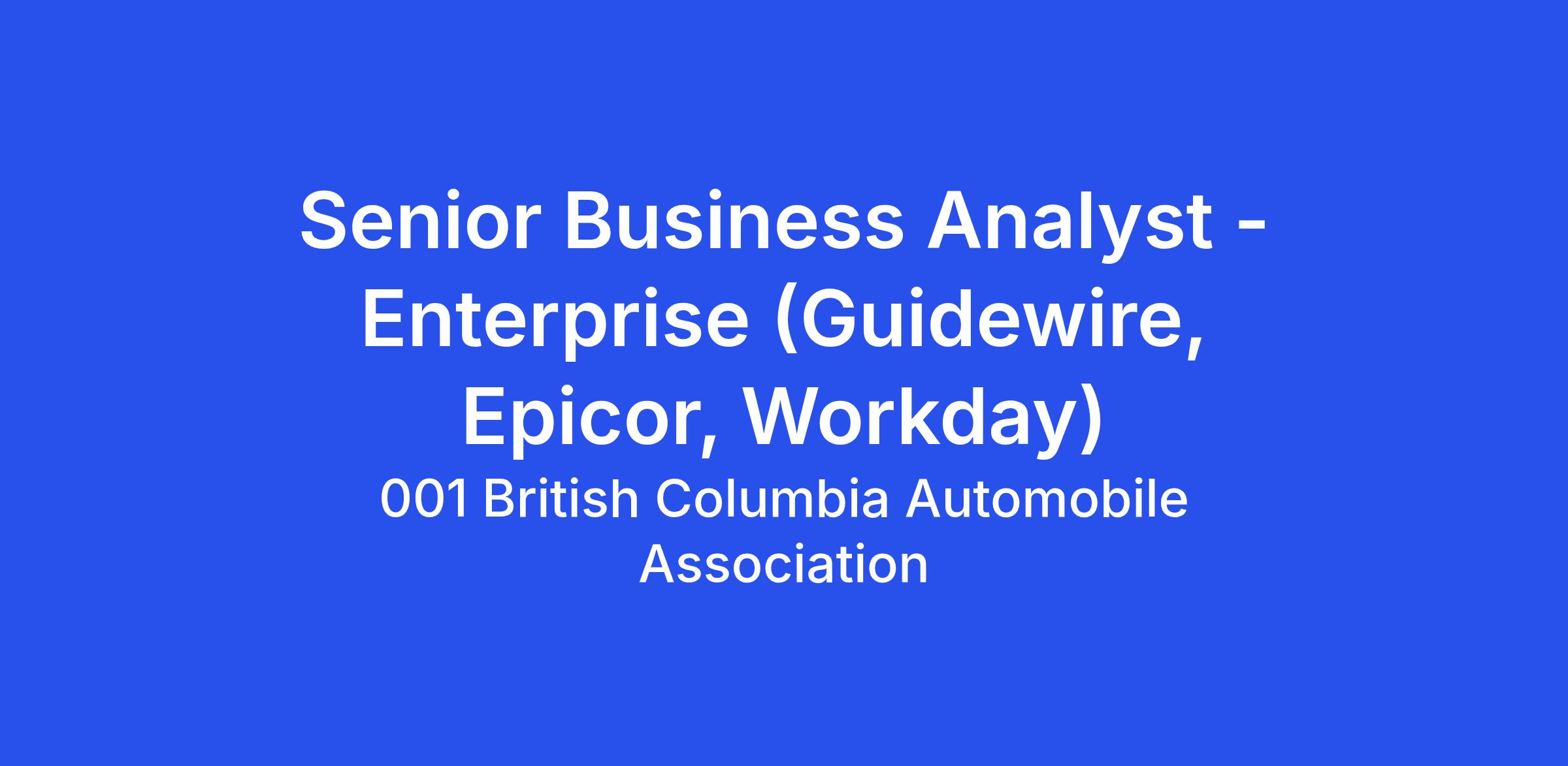As a Senior Business Analyst - Enterprise (Guidewire, Epicor, Workday), you’ll play a key role in connecting business needs with technical solutions. You’ll work on complex, enterprise-level projects and enhancements that support BCAA’s strategic objectives, ensuring systems and processes align with business goals. Acting as a trusted liaison between business users, vendors, and Information Services, you’ll analyze requirements, design solutions, and ensure successful implementation across systems and teams.