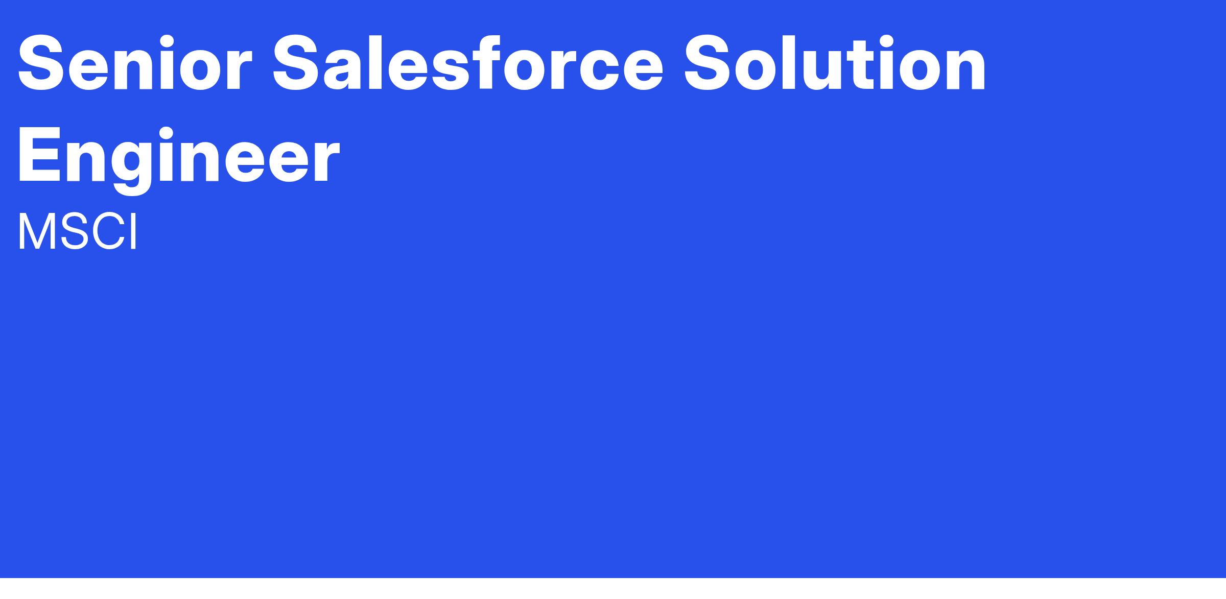 The Sales Technology Team at MSCI plays a critical role enabling internal teams to manage and execute business processes across the Opportunity to Order value chain (Opportunity pipeline management and Contract Lifecycle Management) as well as Order to Cash processes (integrations with ERP). Salesforce @ MSCI is the strategic platform used by Sales, Client Service, Sales Operations, Marketing, Product Management, Finance, and other business units to achieve their business objectives.