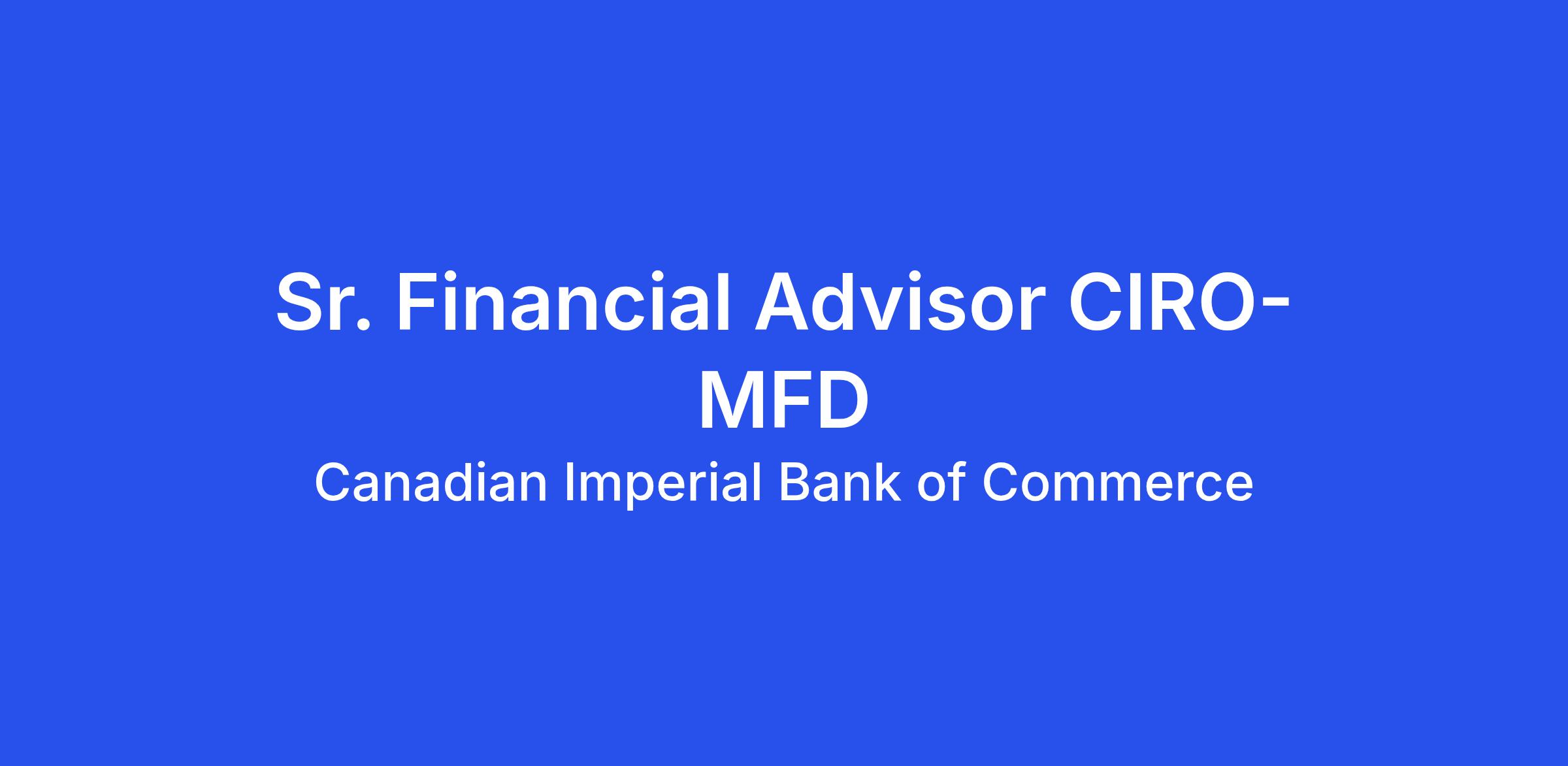 As a member of the Imperial Service Team, you’ll manage and grow your dedicated client portfolio through key relationship management, creating comprehensive financial plans and providing exceptional client service. As a Senior Financial Advisor in the Imperial Service Team, you’ll expertly deliver on CIBC’s Imperial Service approach, taking responsibility for a large portfolio and helping clients plan for today’s needs and tomorrow’s goals. You’ll proactively engage with many new and existing clients to make lasting connections and understand their goals, build their financial plan using advanced CIBC tools and give them the right advice to help them make well-informed choices for their future. You’re flexible to work our banking centre hours which may include evenings and weekends. To help deliver a great client experience, you’re flexible to work at multiple banking centres within a reasonable travel distance.