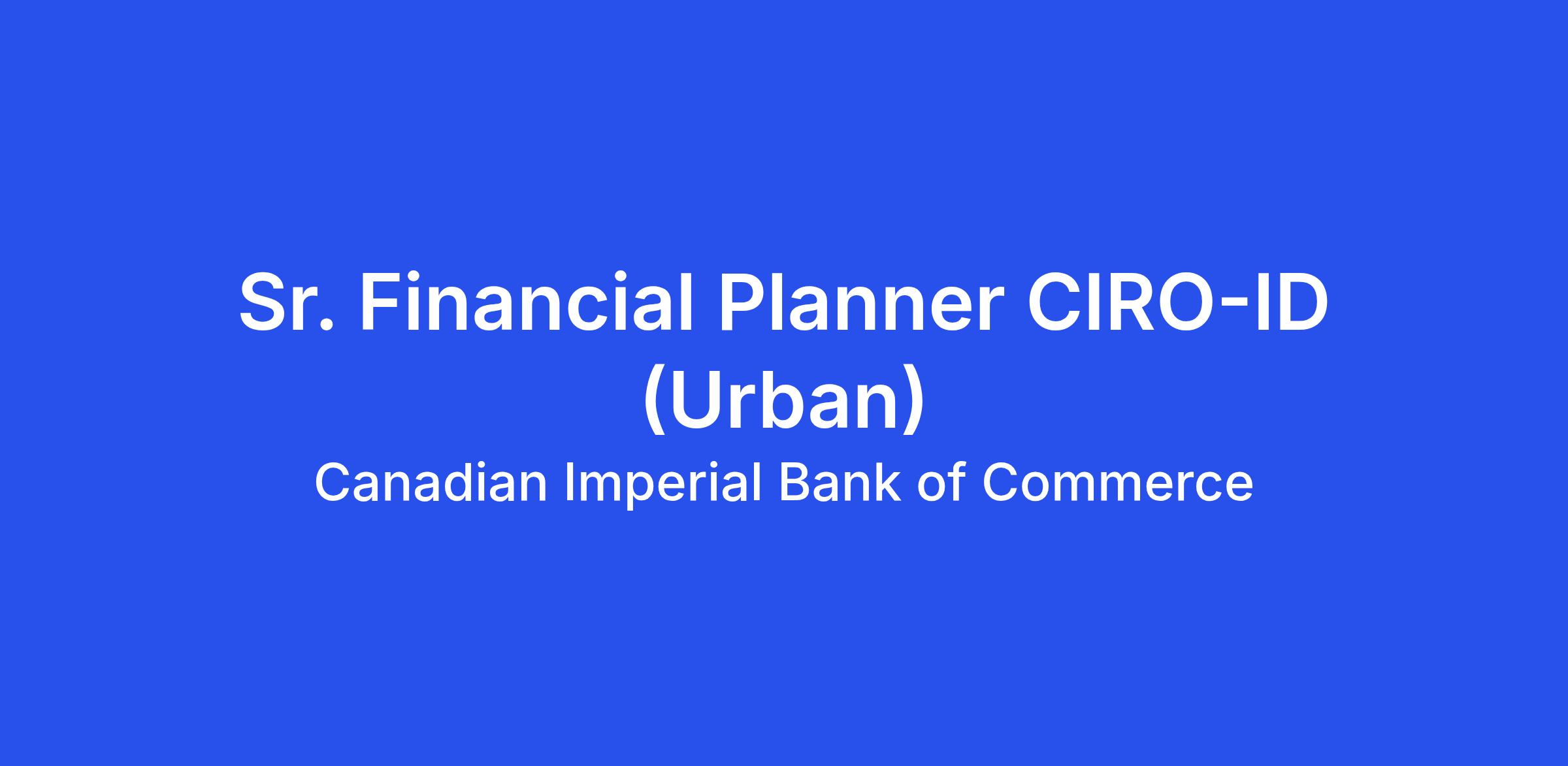 As a member of the Imperial Service Team, you’ll manage and grow a complex client portfolio through key relationship management, creating comprehensive financial plans and providing exceptional client service. As a Senior Financial Planner, you’ll expertly deliver on CIBC’s Imperial Service approach, taking responsibility for a large portfolio and helping clients plan for today’s needs and tomorrow’s goals. You’ll mentor a team of advisors to problem solve and provide comprehensive financial advice, help clients to secure their futures, own homes, and set up businesses. You’re flexible to work our banking centre hours which may include evenings and weekends. To help deliver a great client experience, you’re flexible to work at multiple banking centres within a reasonable travel distance.