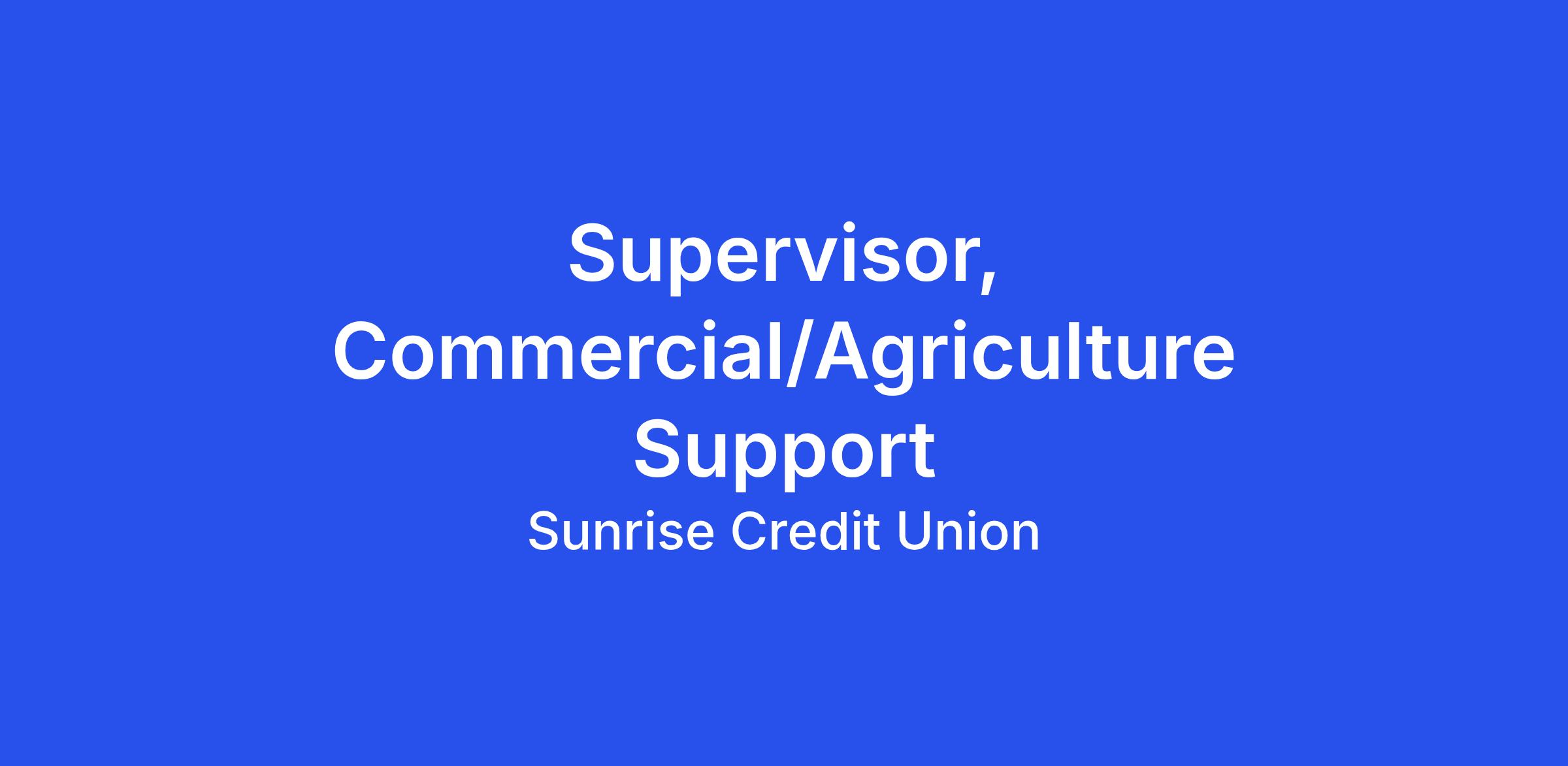 Title: Supervisor, Commercial/Agriculture Support